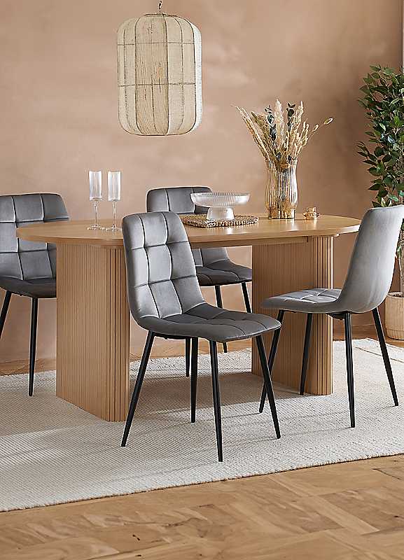 Birlea Axel Oval Fluted Dining Table with 4 Chairs - OAK/GREY