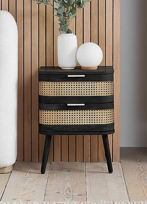 Embrace timeless sophistication with the exquisite Noah design, a testament to understated elegance. This beautifully crafted range exudes a harmonious blend of traditional artisanship and contemporary aesthetics, designed to infuse any space with a serene and refined ambiance. Each curve is thoughtfully softened, featuring delicate bevels that whisper a modern sensibility. The rattan front is meticulously woven, presenting a pattern that is both eye-catching and gracefully reserved. The warm, neutral palette ensures versatility, while the smooth wooden surfaces invite a tactile experience. Ideal for those who appreciate the subtlety of design, this range promises to elevate your home with its timeless charm and a whisper of modernity.Weight of Product: 11kgSuggested Number of People for Assembly: 1/2Tool Kit Included: YesSelf-AssemblyManufacturer's 1 year guaranteeWipe clean only, avoid household cleaners/abrasivesManufactured WoodOverall assembled dimensions approx. 59H x 45W x 34D cmPlease remember to measure your available space before ordering. If using on an un-carpeted floor we recommend rubber or felt protection pads be used under the legs to avoid damage to your floors.