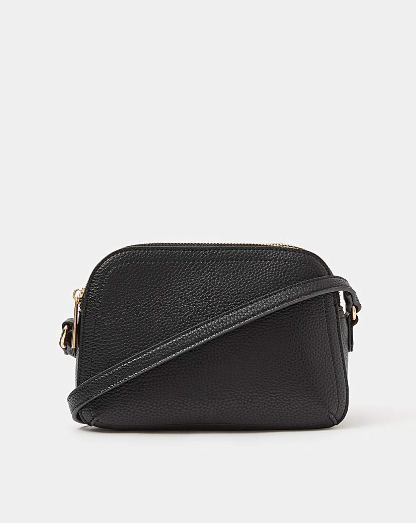 Accessorize Double Zip Crossbody Bag Ready for your everyday adventures, this crossbody bag is designed to make life a little easier. Crafted in faux leather with a pebbled finish, it comprises two zip compartments, an adjustable buckle strap, and gold-tone hardware. Outer: Polyurethane (Pu) 100% Lining: Polyester (Recycled) 100%