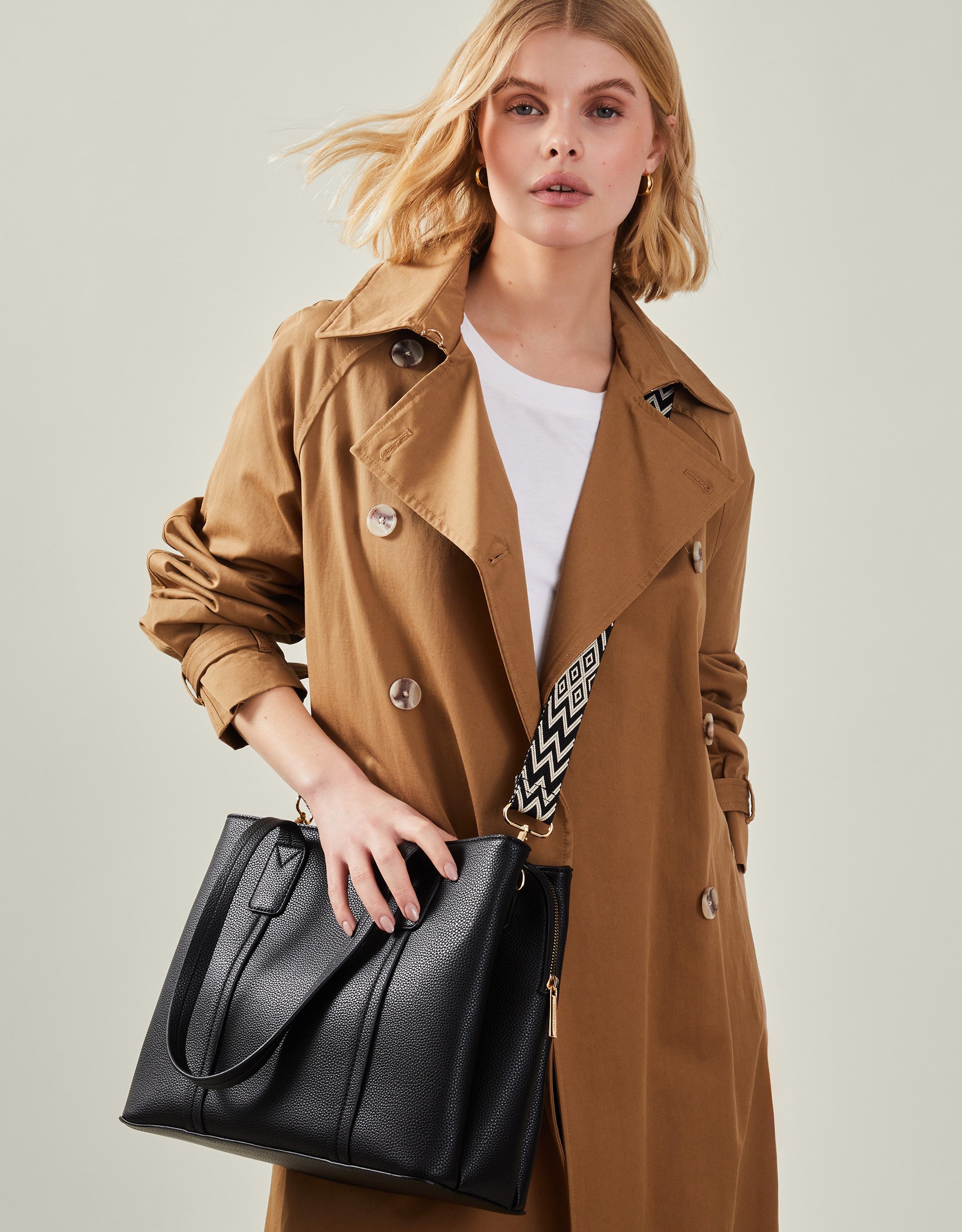 Black and Cream Pu Webbing Strap Tote Bag, Size: 26x34cm, Women's - Accessorize