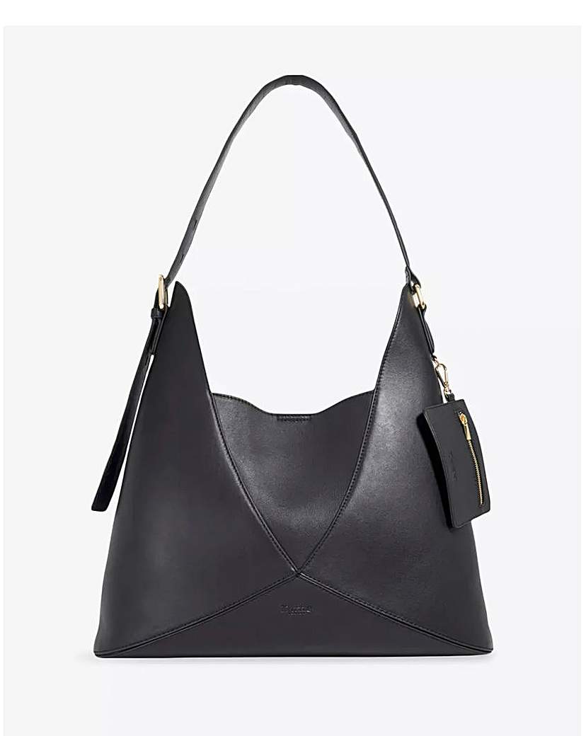 This timeless tote is crafted from leather and features origami-style folds, which open up to reveal a spacious central compartment. This minimal tote has a rounded base and a slim adjustable top handle that fits comfortably over the shoulder. Dearest comes with a detachable suede zip up purse.