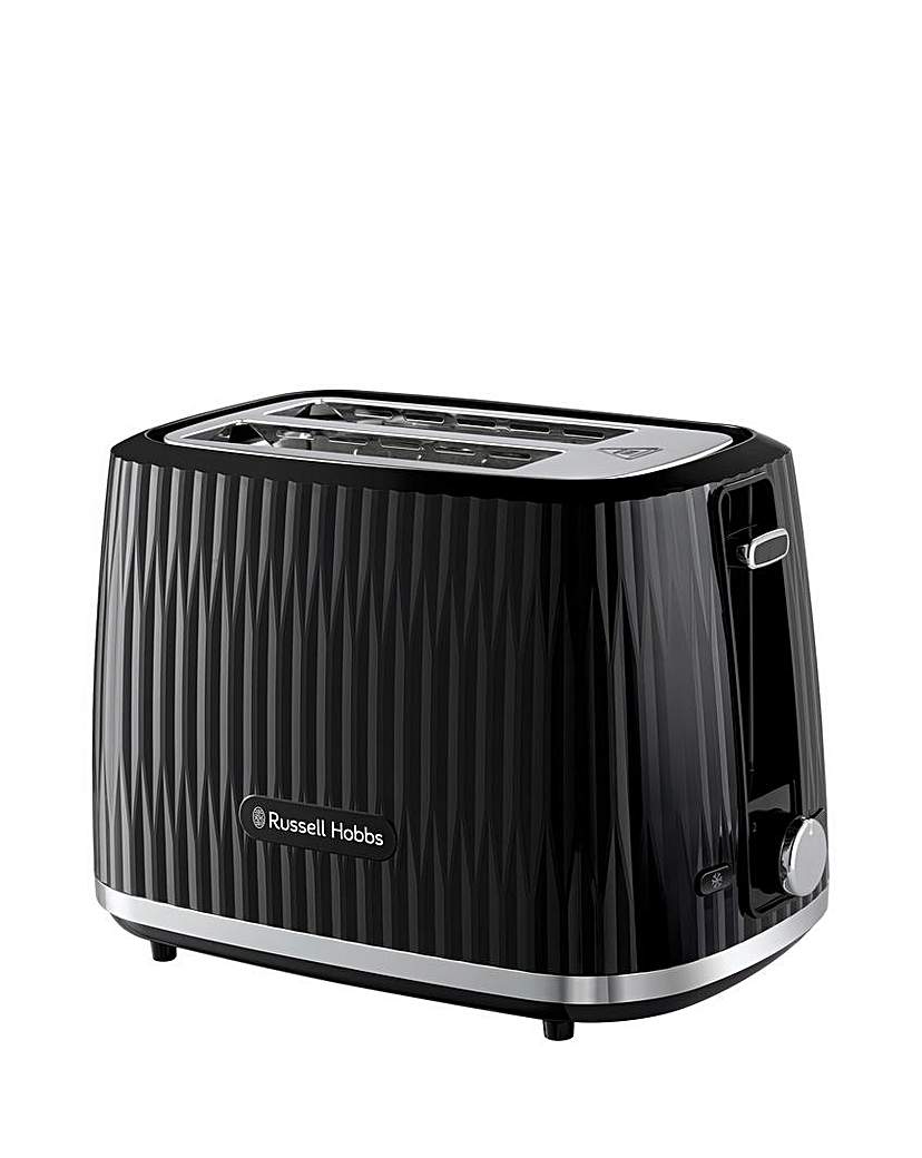 The stylish textured exterior makes the Russell Hobbs Eden 2 Slice Black Toaster a wow feature in any kitchen. With a choice of 6 browning settings and frozen, reheat and cancel functions, the perfect slice pops out every time. And thanks to the handy high lift feature, you can safely lift your bread out of the warm slot for easy retrieval.