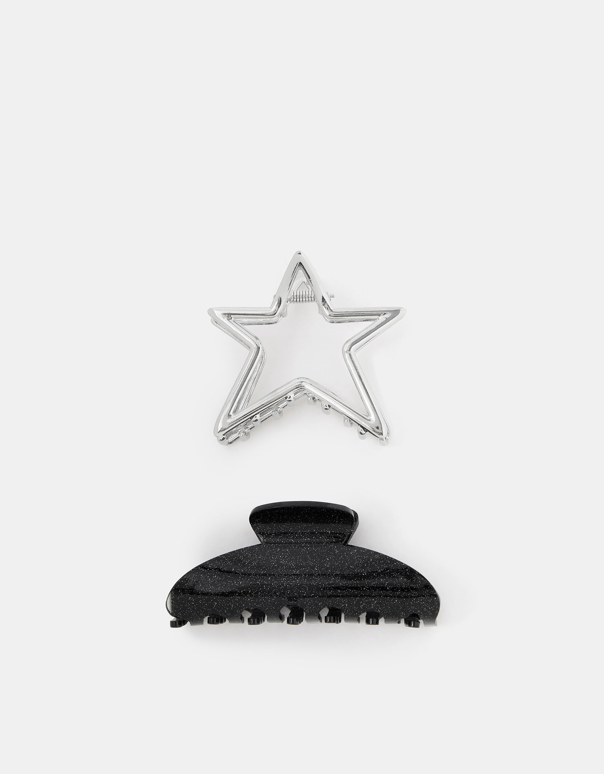 Experience the best of both worlds with this claw clip set. Featuring star-shaped and glittery black hair clips, your up-dos will have never looked better. Two included.
