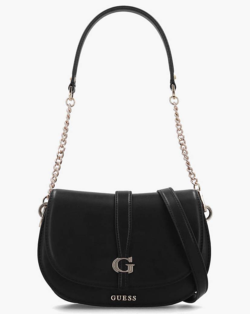 Guess Carrie Flap Black Shoulder Bag The Guess Carrie Flap Black Shoulder Bag is a timeless classic silhouette that will see you through Season after Season. A smooth design with polished gold tone accents. The secure magnetic snap fastening front flap allows access to a double compartment with handy inner zip and slot pockets, exterior zip pocket also features. Carry by either of the detachable straps on the shoulder or across the body. Classic 'G' logo adds detail to the front flap. Signature Guess branding completes the design. Technical information: Smooth Design, Gold Tone Hardware, Magnetic Snap Front Flap, Triple Compartments, Inner Zip & Slot Pockets, Exterior Zip Pocket, Detachable Shoulder Strap, Detachable Cross-Body Strap, Contains Recycled Plastic, G Logo, Guess Branding, Includes Dust Bag Dimensions: L24 x H17 x D6.5 CM