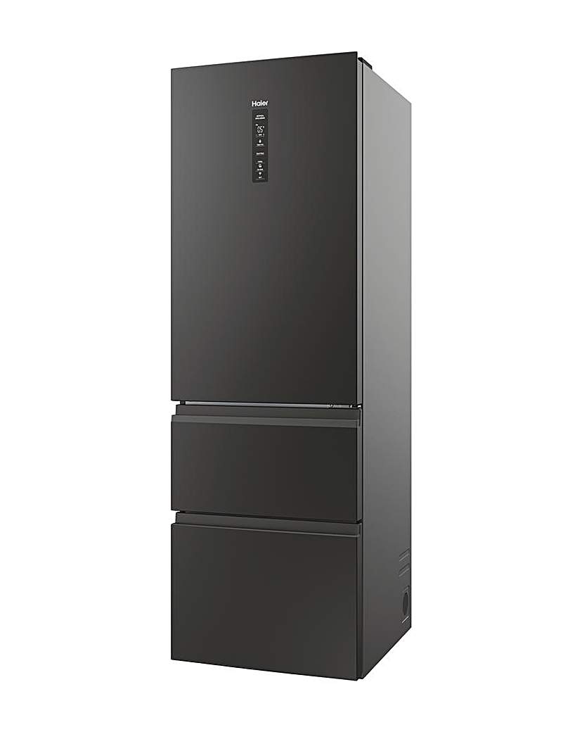 The Htw3618Enpb 3D 60 Series 3 Fridge Freezer exemplifies a seamless fusion of contemporary aesthetics and advanced refrigeration technology. This freestanding appliance, with its chic black finish and practical 3-door configuration, adds a sophisticated touch to any kitchen while providing convenience and efficiency. Offering a total capacity of 360 litres, the fridge freezer is well-suited for families or individuals who require ample storage space without compromising on style or functionality. The Gently Air Flow system ensures even air distribution within the compartments, preserving the freshness and taste of your food items over extended periods. Designed with Easy Access drawers, this refrigerator allows you to organise and access your groceries effortlessly. The inclusion of My Zone Pro technology provides tailored storage solutions by letting you adjust the temperature settings according to the specific needs of your food, ensuring optimal preservation. Equipped with Haier Artificial Intelligence, the fridge freezer offers a smart and intuitive user experience. The double setting external display facilitates straightforward access to controls, allowing you to easily manage temperature settings for customised cooling. Model: Htw3618Enpb 3D 60 Series 3, Type: Freestanding, Colour: Black, Energy Efficiency Class: E, Total Capacity: 360 litres