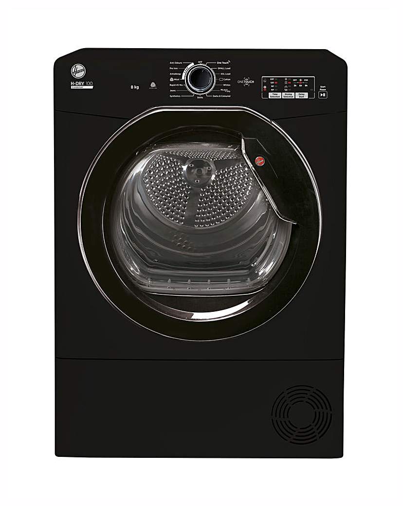 This product includes our Installation & Recycling service. Get your clothes wardrobe-ready with this Hoover H-Dry 300 Hlec8Lgb-80 condenser tumble dryer. Capacity - 8 kg, Dryer type - Condenser - Place it wherever you desire. It doesn't require additional vents as it uses hot air to dry clothes and collects moisture in an easy-to-empty access tank, 16 drying programmes, Four drying levels - Iron Dry, Extra Dry, Cupboard Dry, Hanger Dry, Loading type - Front, Drum Volume - 125L, Energy Rating - B.