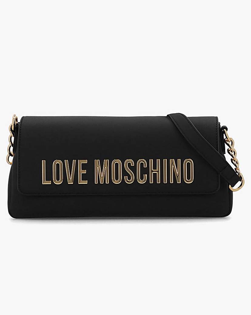 Love Moschino Bold Love Logo Black Evening Bag The New Season Love Moschino Bold Love Logo Black Evening Bag is a versatile style. Crafted in a textured matte design with polished gold tone accents. The secure magnetic snap front flap allows access to the single main compartment and features handy inner zip and slot pockets. Carry by the adjustable strap on the shoulder. Statement logo adds detail to the front flap, further Love Moschino branding completes the design. Technical information: Textured Matte Design, Gold Tone Hardware, Magnetic Snap Front Flap, Single Main Compartment, Inner Slip & Slot Pockets, Adjustable Shoulder Strap, Bold Logo, Love Moschino Branding, Includes Dust Bag Dimensions: L28 x H16 x D6.5 CM