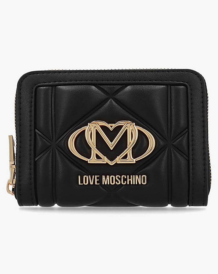 Love Moschino Heart Logo Quilted Pillow Black Purse The Love Moschino Heart Logo Quilted Pillow Black Purse is the perfect everyday accessory. Crafted from a premium smooth PU material in a quilted pillow design with polished gold tone accents. The secure zip around fastener allows access to multiple classic purse compartments. Statement heart logo motif adds detail to the front of the purse. Signature Love Moschino branding completes the design. Technical information: PU, Quilted Pillow Design, Gold Tone Hardware, Zip Around Fastening, Multiple Compartments, Large Logo Motif, Love Moschino Branding, Comes In Gift Box Dimensions: L13 x H11 x D2.5 CM