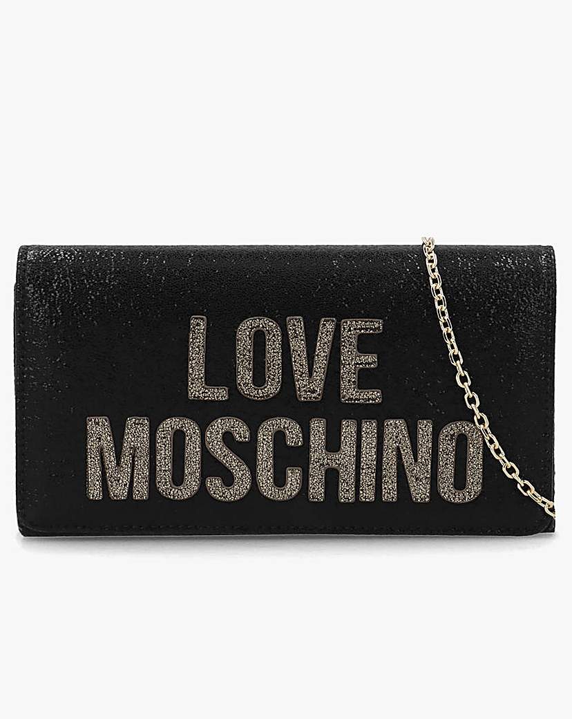 Love Moschino Smart Logo Black Shoulder Bag The New Season Love Moschino Smart Logo Black Shoulder Bag is a versatile style. Crafted in a pebbled high shine design with polished gold tone accents. The secure magnetic snap front flap allows access to the single main compartment and features handy inner slip and card slot pockets. Carry by the chain strap on the shoulder or across the body, or why not tuck inside for a classic clutch silhouette. Statement contrasting logo adds detail to the front flap, further Love Moschino branding completes the design. Technical information: Pebbled Design, High Shine, Gold Tone Hardware, Magnetic Snap Front Flap, Single Main Compartment, Inner Slip & Card Slot Pockets, Chain Strap, Contrasting Logo, Love Moschino Branding, Includes Dust Bag Dimensions: L22 x H14 x D5.5 CM