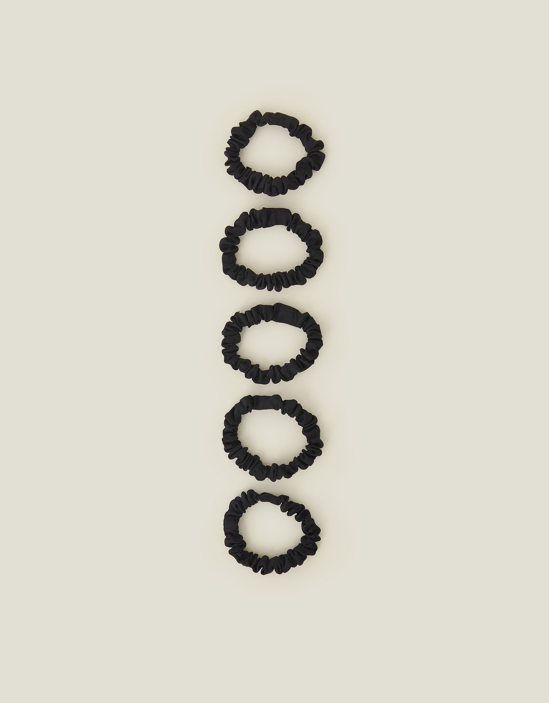 Black Pack of 5 Skinny Satin Scrunchies, Size: 6cm, Women's - Accessorize