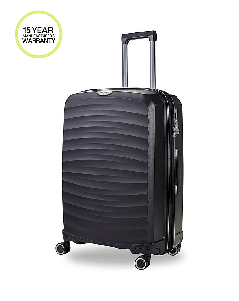 A Superhero Suitcase! This Rock suitcase is made from ultra-strong polypropylene which is tough, durable and impact-resistant. Built to last - all Rock products come with a 15 year manufacturer's warranty against manufacturing defects arising from faulty workmanship or materials. Expandable - leave your packing worries behind with Sunwave's expander zip which can be opened to increase the volume of the case, providing valuable additional packing capacity for any last-minute extras or new purchases you may need to squeeze in. Tough & Practical - 8 smooth rolling wheels and a telescopic, push-button handle will help you glide effortlessly on your travels. Integrated TSA combination lock - For your complete peace of mind, Sunwave cases are fitted with an integrated TSA combination lock. The interior has luxurious soft touch full lining and a mesh divider section. The design also features a convenient zipped inside pocket and elasticated packing straps to keep your clothes securely in place.