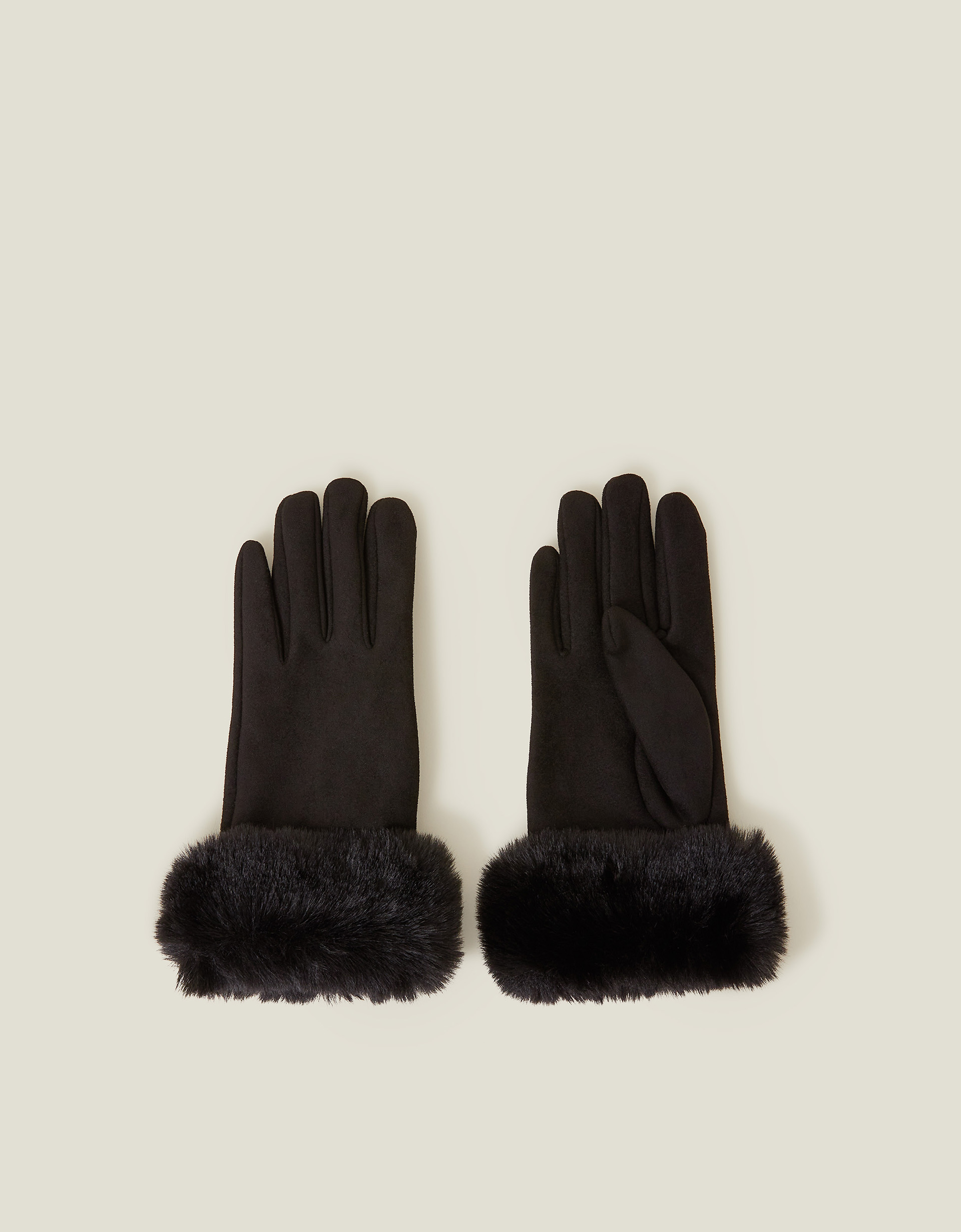 Black Suedette Faux Fur Cuff Gloves, Size: 24cm, Women's - Accessorize