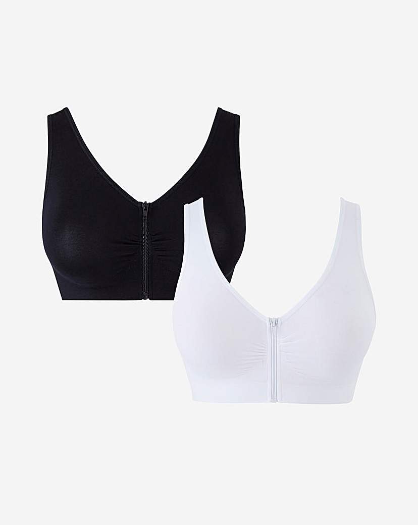 Sporty, comfortable and super easy to wear, our pack of two zip-front comfort tops are a must-have addition to your lingerie/loungewear collection. Made using a soft, seamless, tubular knitted fabric, these tops feature wide straps and a scoop front and back for maximum comfort that doesn't compromise on style. The zip-up front adds a sporty touch, meanwhile the non-padded, non-wired cups provide a relaxed feel that lasts throughout the day. To complete the look, browse through our range of loungewear and nightwear. Fits up to a D cup.