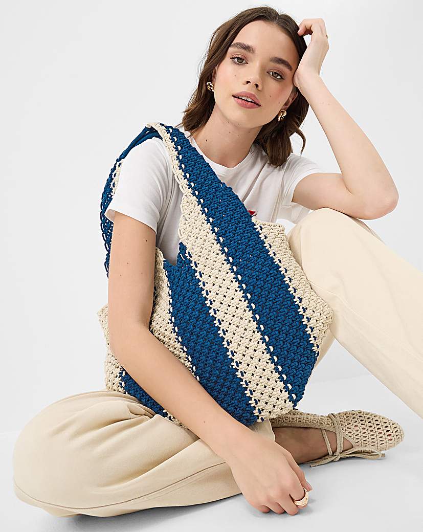 Accessorize Macrame Tote Bag Nailing the Euro summer brief, this beach tote has been crafted with ocean blue and sand coloured yarns, giving you a shoulder bag that'll store all your beach essentials including Spf, sunnies and a thrilling read, of course. Now, where are you off to? Outer: Cotton 100%