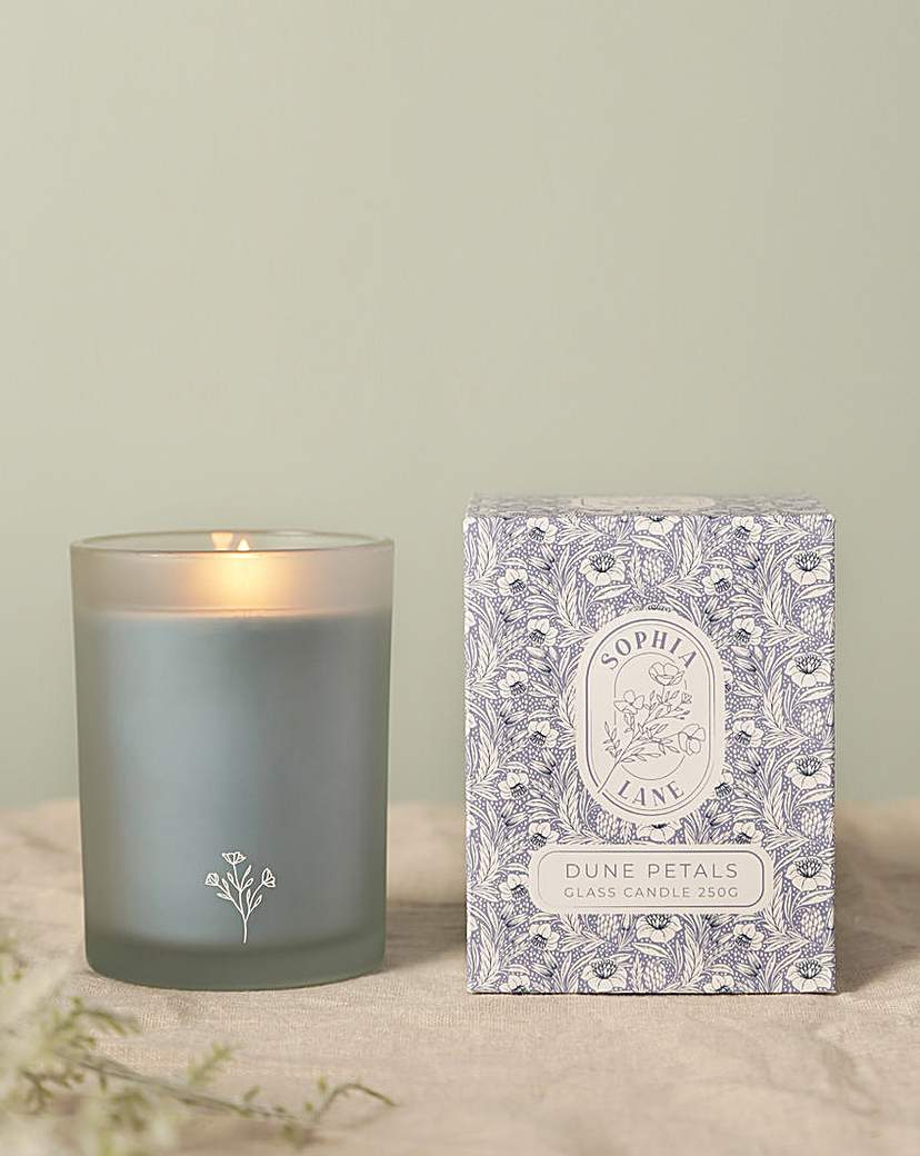 The Sophia Lane Dune Petals Floral Candle - 250g is an elegant candle that fills any room with a warm, inviting glow and subtle fragrance.