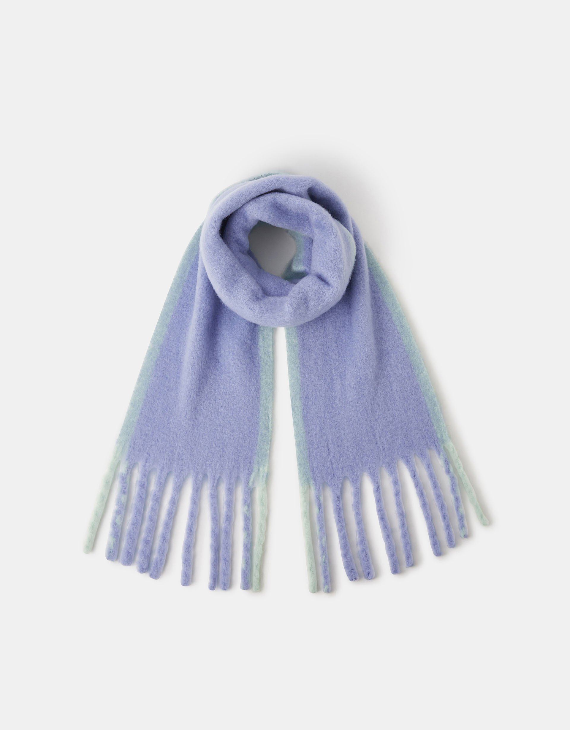 Cold? Couldn’t be us – not with this scarf. Made from yarns so soft it feels like a warm hug, this scarf is made in blue with light contrast edges and chunky twisted tassels to finish.
