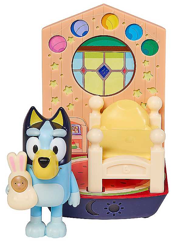 With an adventurous and positive spirit Bluey is loved by children the world over, inspiring play and inclusion from a young age. Our officially licensed Bluey GoGlow Dream Night Light is a playset, nightlight, sleep timer, and a torch all in one! Inspired by Bluey's bedroom, this nightlight can be used as a playset where your child can put Bluey to bed. The nightlight gives off a comforting glow to ease your child to sleep, with an auto-off 10 minute timer, so the light doesn't stay on all night, keeping them awake and saving battery. Bluey can be picked up and taken wherever your child likes, and works as a lightweight handheld torch that's a great way to build your child's confidence in the dark, as it can light their way if they need to get up during the night. The nightlight also includes a sleep timer, that encourages your child to stay in bed until it's time to get up. With options for 10 hour, 12 hour, and play mode, the lights change from night time moonlight to morning sunshine when it's time for your child to get up. The Bluey Bedtime GoGlow Dream nightlight is a great gift for any young Bluey fan, suitable for ages 2 years+, the nightlight requires 3 x AAA batteries, and the Bluey torch 1 x AAA (batteries not included).Requires x3 AAAPlasticDimensions approx. 14 x 9 x 11 cm