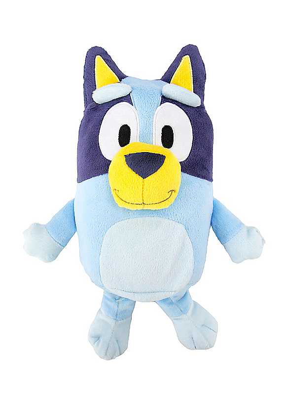 With an adventurous and positive spirit Bluey is loved by children the world over, inspiring play and inclusion from a young age. Our officially licensed Bluey GoGlow Pal is a nightlight and soft toy in one! It's perfect for young children who are learning to sleep through the night on their own and may be nervous in the dark, giving them a light source and a friendly face at bedtime. When your child gives Bluey a cuddle her stomach lights up, with the nightlight giving a gentle comforting glow as your child drifts off to sleep. Designed to turn off after 10 minutes, saving battery and letting your child sleep, if they wake up during the night they can give Bluey another squeeze to turn the light back on. The Bluey Pal is also a soft toy that your child can take everywhere, perfect for play and as their cuddly friend. The Bluey GoGlow Pal is ideal as a present for any young Bluey fan, for Christmas, birthdays or throughout the year, and takes 2 x AAA batteries (not included). This soft Bluey toy measures 25cm x 16cm x 13cm (LxWxD).Requires x3 AAAPolyesterDimensions approx. 25cm x 16cm x 13cm