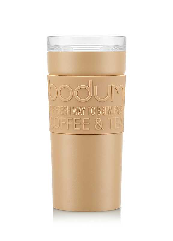 Ideal for the daily commute, holidays, the gym or simply walking the dog, the Bodum Travel Mug is designed to go wherever you go, ensuring that your coffee, tea or other favourite drink is always within reach, even when you're far from home.Central to the Travel Mug's stylish, streamlined design is our innovative, insulating double wall system. It keeps hot and cold beverages at their best for hours, so you can savour every sip. Rest assured that the exterior stays cool even when the contents are piping hot. Durable and robust, this stainless steel travel mug is wrapped in a non-slip silicone sleeve for comfortable carrying, and has a secure lid with drinking aperture.The combination of style, convenience and portability make this one of the best travel coffee mugs for any journey. What's more, you can enjoy every drink more knowing that you've swapped single-use cups for a long-lasting, more eco-friendly alternative.Available in a range of colours, your Travel Mug is as individual as you are.Vacuum Travel Mug, s/s, 0.35L, 12oz with clear lid in Belly BandUse & Care: Clean the stainless steel travel mug after each useStainless Steel, Plastic, Rubber, Silicone