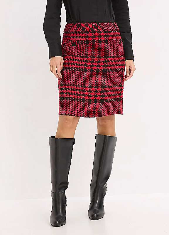 bonprix Checked Boucle Knit Mini Skirt - Black/Red - Size 18
