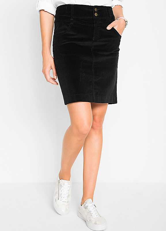 A straight cut skirt designed in soft stretch cord. Featuring side pockets, back pockets and a slit at the back.Brand: bonprixWashable98% Cotton, 2% ElastaneLength approx. 50 cm (19¬Ω in)Please Note: European sizing tends to run smaller than UK. We suggest sizing up for the perfect fit! | black stretch skirt, skirt with pockets, casual black skirt, skirt above knee, black fitted skirt, black cotton skirt, cord black skirt, straight skirt black, solid black skirt, classic skirts