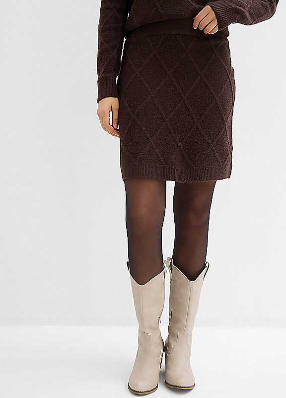 bonprix Elasticated Waist Knit Skirt - Dark Brown - Size 22/24