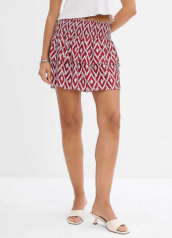This ruffle skirt features a smocked waistband and an eye-catching ikat print, making it a must-have for any fashion-forward wardrobe. Crafted from soft viscose, it offers a comfortable fit with its elasticated waistline. Ideal for adding texture and pattern to your outfit.Machine washable100% Viscose ()Length approx. 42 cmPlease Note: European sizing tends to run smaller than UK. We suggest sizing up for the perfect fit!