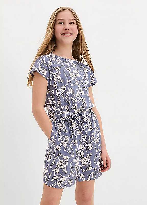 bonprix Kids Short Floral Jumpsuit - Blue Multi - Size 9Y