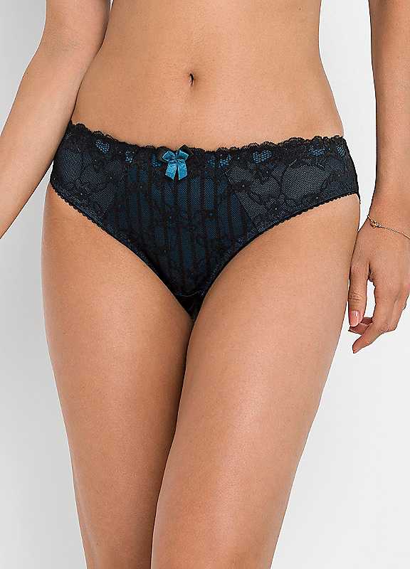 Pair of romantic style briefs that features lace detailing and a plain back. Brand: bonprix Washable 71% Polyamide, 18% Elastane, 7% Cotton, 4% Polyester