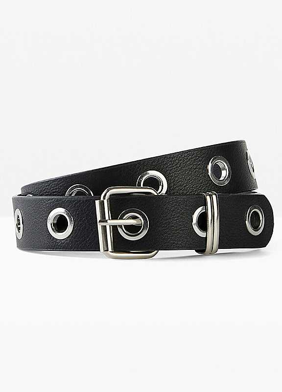 Introducing bonprix's Metallic Eyelet Belt - the perfect accessory for all your fashion needs! Made with high-quality faux leather, this belt will make you look like a million bucks without breaking the bank. The metallic eyelets add just the right amount of bling to any outfit, making you the envy of all your friends. Plus, it's versatile enough to go from daytime chic to nighttime glam in a snap. So why settle for a boring old belt when you can have a bonprix Metallic Eyelet Belt? Get yours today and become the talk of the town (or at least your group chat).Brand: bonprixFaux Leather (PU) | leatherette belt, silver metal belt, faux leather belt, eyelet belt