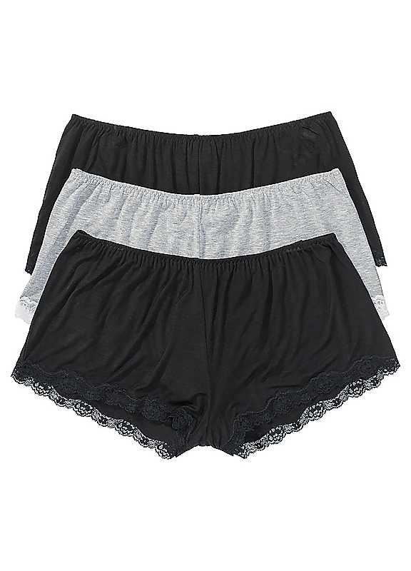 bonprix Pack Of 3 Lace Trim Shorts - Black/Grey - Size 30/32