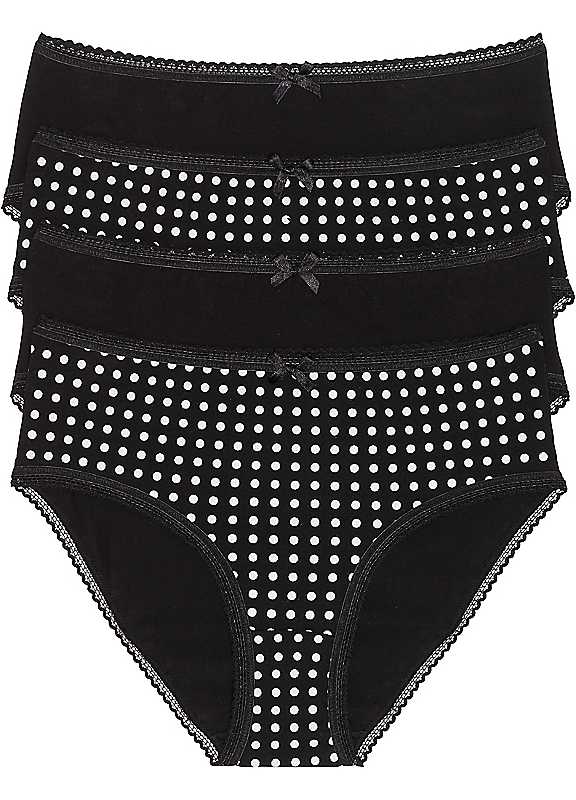 bonprix Pack of 4 Full Briefs - Black / Black/White Spot - Size 18/20
