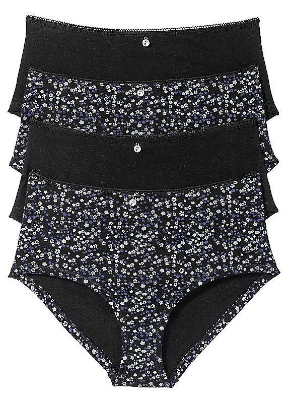Four pairs of cotton briefs with a comfy high rise. Washable 95% Cotton, 5% Elastane | cotton briefs women, plus size cotton briefs, womens full briefs, high waist brief, black high waisted briefs, high waisted cotton briefs, black cotton briefs, high waisted full briefs