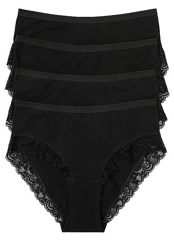 Four cotton briefs with lace trim. Brand: bonprix 95% Cotton, 5% Elastane