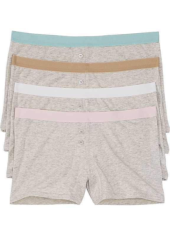 4 pairs of cotton shorts that come with a contrast waist and a mock fly. Pack of 4 Washable 95% Cotton, 5% Elastane | cotton boxer shorts, soft cotton underwear, cotton boxers women, womens cotton boyshorts