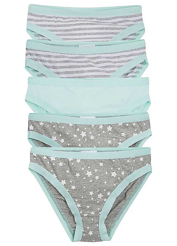 bonprix Pack Of 5 Girls Briefs - Grey Marl/White/Mint - Size 6Y/7Y