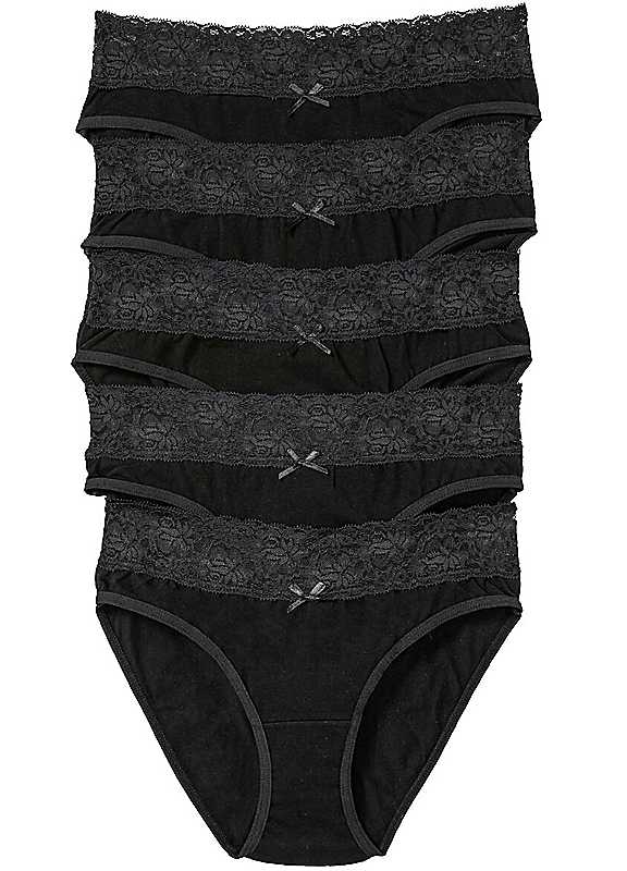 bonprix Pack of 5 Lace Trim Briefs - Black - Size 30/32