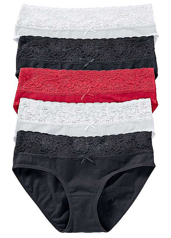 bonprix Pack of 5 Lace Trim Briefs - Colour Mix 2 - Size 26/28