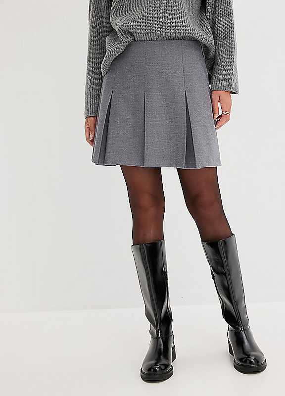 bonprix Pleated Mini Skirt - Grey Marl - Size 26