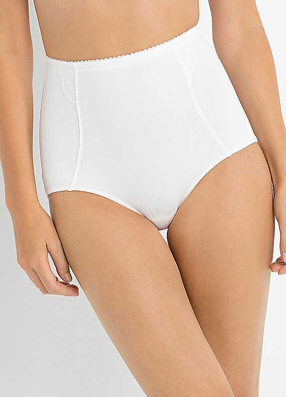 High rise shaper briefs with lace detailing. Brand: bonprix High waist & leg Outer material: 80% Polyamide, 20% Elastane Lining: 100% Cotton Lace: 87% Polyamide, 13% Elastane Mesh lining: 84% Polyamide, 16% Elastane | tummy control shapewear, high waisted shapewear, cotton shaper, waist control shapewear, white shapewear, high compression shapewear, body shaping briefs, high waisted briefs