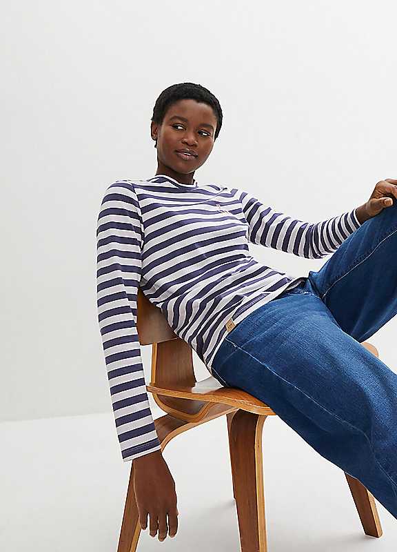 Introducing the Stripy Jersey Top from bonprix, the perfect addition to your wardrobe for those casual days! Made with cotton, this long-sleeved crew neck top features jolly stripes and an embroidered anchor design. Comfortable, stylish, and, this womens top is a must-have for any fashion-forward individual. Don't miss out on adding a touch of fun and sustainability to your day with the bonprix Stripy Jersey Top. Brand: bonprix95% Cotton, 5% ElastaneLength approx. 62 cmPlease Note: European sizing tends to run smaller than UK. We suggest sizing up for the perfect fit!