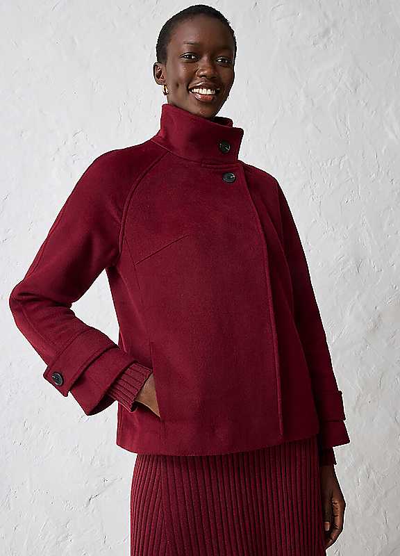 bonprix Wool Mix Funnel Collar Coat - Maroon - Size 10