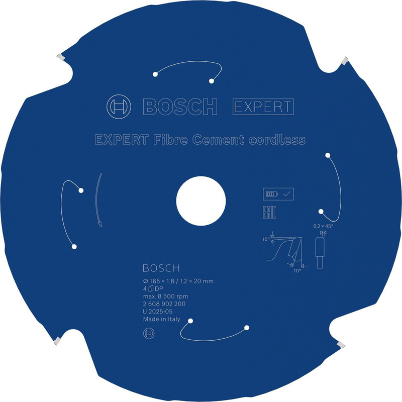 Bosch EXPERT Cordless Fibre Cement Circular Saw Blade 165 x 20 x 4T in Blue