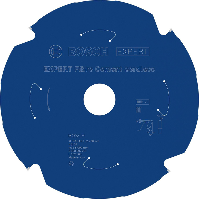 Bosch EXPERT Cordless Fibre Cement Circular Saw Blade 190 x 30 x 4T in Blue