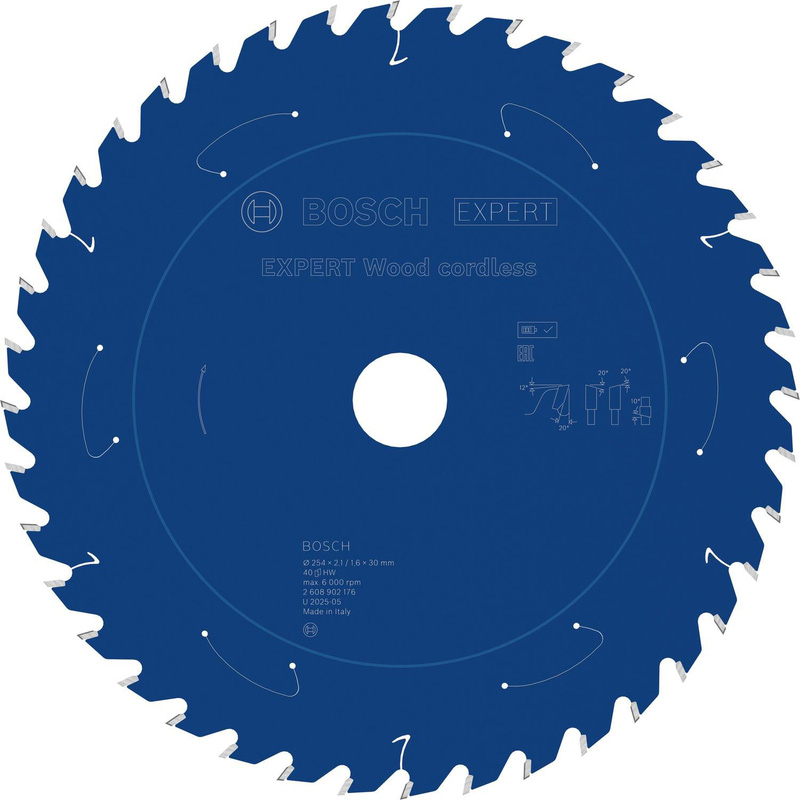 Bosch EXPERT Cordless Wood Circular Saw Blade 254 x 30 x 40T in Blue