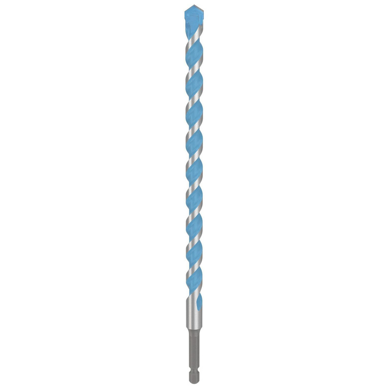 This highly versatile drill bit can drill accurately into hard materials, such as granite, without skidding – thanks to its sharp tip and advanced geometric design. Made from optimised carbide using our fine grinding manufacturing technique, it can also tackle concrete, brick, soft tile, wood and metal. Never get stuck on a job or waste time looking for the right bit. This highly versatile drill bit from Bosch can drill accurately into a wide range of hard materials without skidding, thanks to its sharp tip and advanced geometric design. Made from optimised carbide using a fine grinding manufacturing technique, it can tackle concrete, brick, soft tile, wood, granite and metal. It’s the one drill bit that should always be in your toolbox, ready to do a professional job – whatever the material. * Centering geometry – for a precise and accurate drilling start. * Hex shank – provides a strong connection and maximum torque transmission. * Multi-purpose – suitable for use on concrete, brick, soft tile, wood and metal. * Versatile – for use with impact drivers, rotary drill drivers and screwdrivers. | Bosch EXPERT HEX-9 TCT Drill Bit 12 x 250mm in Silver/Blue