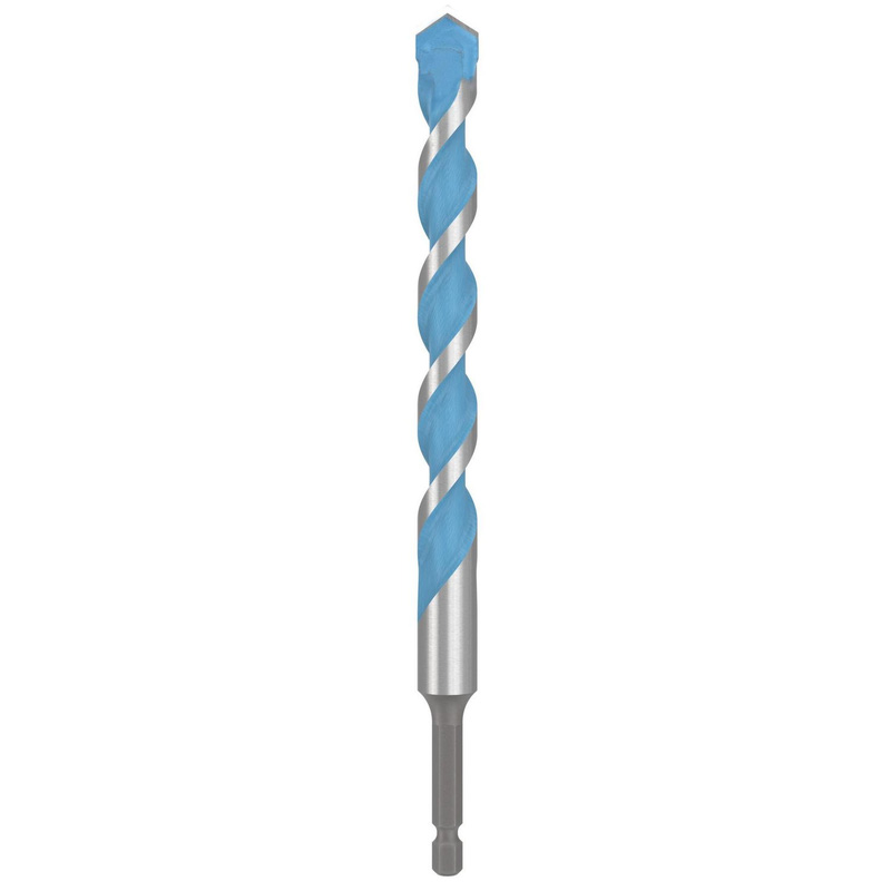 This highly versatile drill bit can drill accurately into hard materials, such as granite, without skidding – thanks to its sharp tip and advanced geometric design. Made from optimised carbide using our fine grinding manufacturing technique, it can also tackle concrete, brick, soft tile, wood and metal. Never get stuck on a job or waste time looking for the right bit. This highly versatile drill bit from Bosch can drill accurately into a wide range of hard materials without skidding, thanks to its sharp tip and advanced geometric design. Made from optimised carbide using a fine grinding manufacturing technique, it can tackle concrete, brick, soft tile, wood, granite and metal. It’s the one drill bit that should always be in your toolbox, ready to do a professional job – whatever the material. * Centering geometry – for a precise and accurate drilling start. * Hex shank – provides a strong connection and maximum torque transmission. * Multi-purpose – suitable for use on concrete, brick, soft tile, wood and metal. * Versatile – for use with impact drivers, rotary drill drivers and screwdrivers. | Bosch EXPERT Multi Construction TCT Drill Bit 16 x 200mm in Silver/Blue