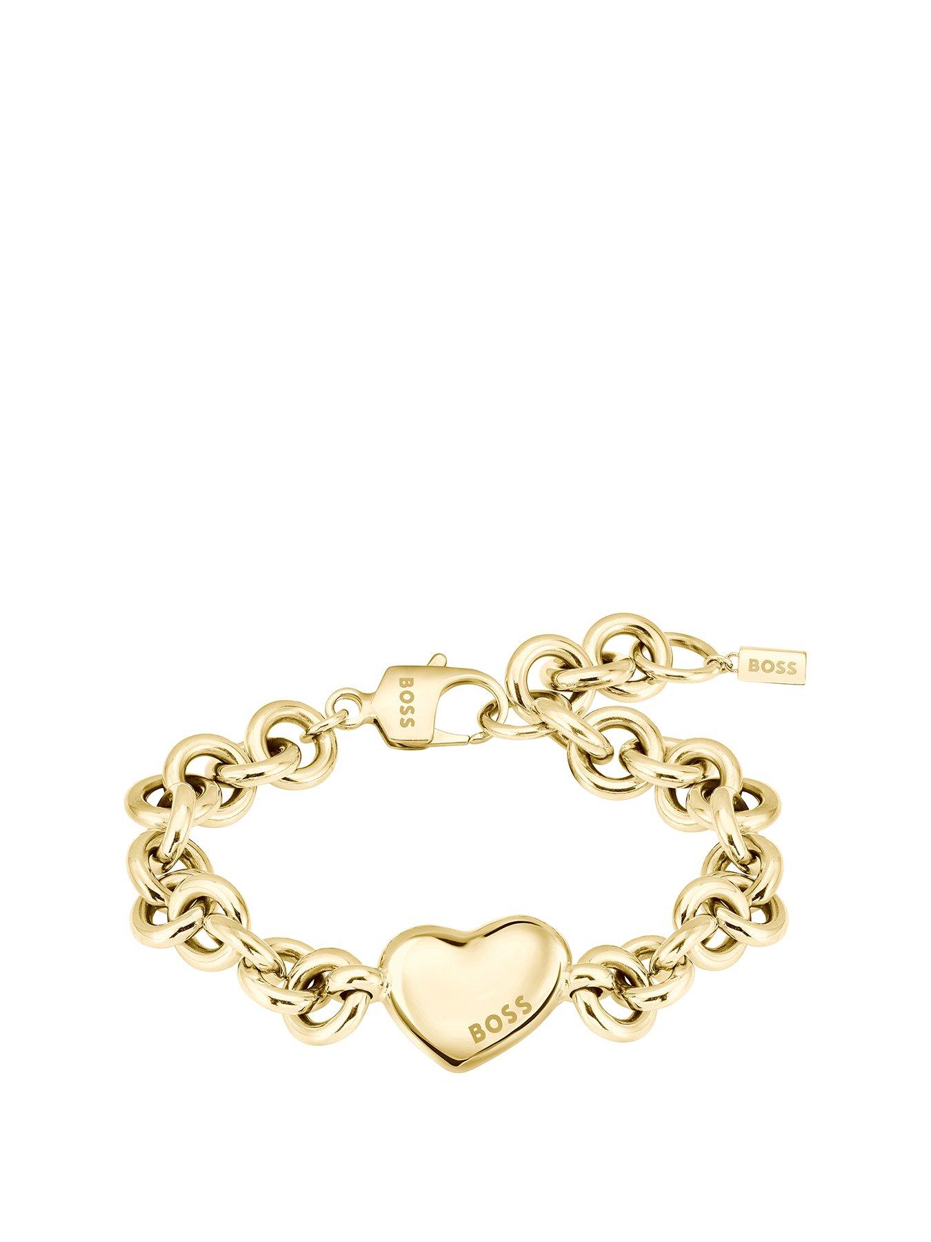 Boss Honey Ladies Bracelet Gold Boss Ladies Bracelet From The Honey Love Collection. Featuring A Light Yellow Gold Ip Linked Chain With Boss Branded Heart Pendant. Finished With A Lobster Clasp Closure. Inner Circumference 160Mm With Extender. Width 11 Mm Link With 22 Mm Heart. Fashion Jewellery Type: Bracelets Metal Type: Stainless Steel
