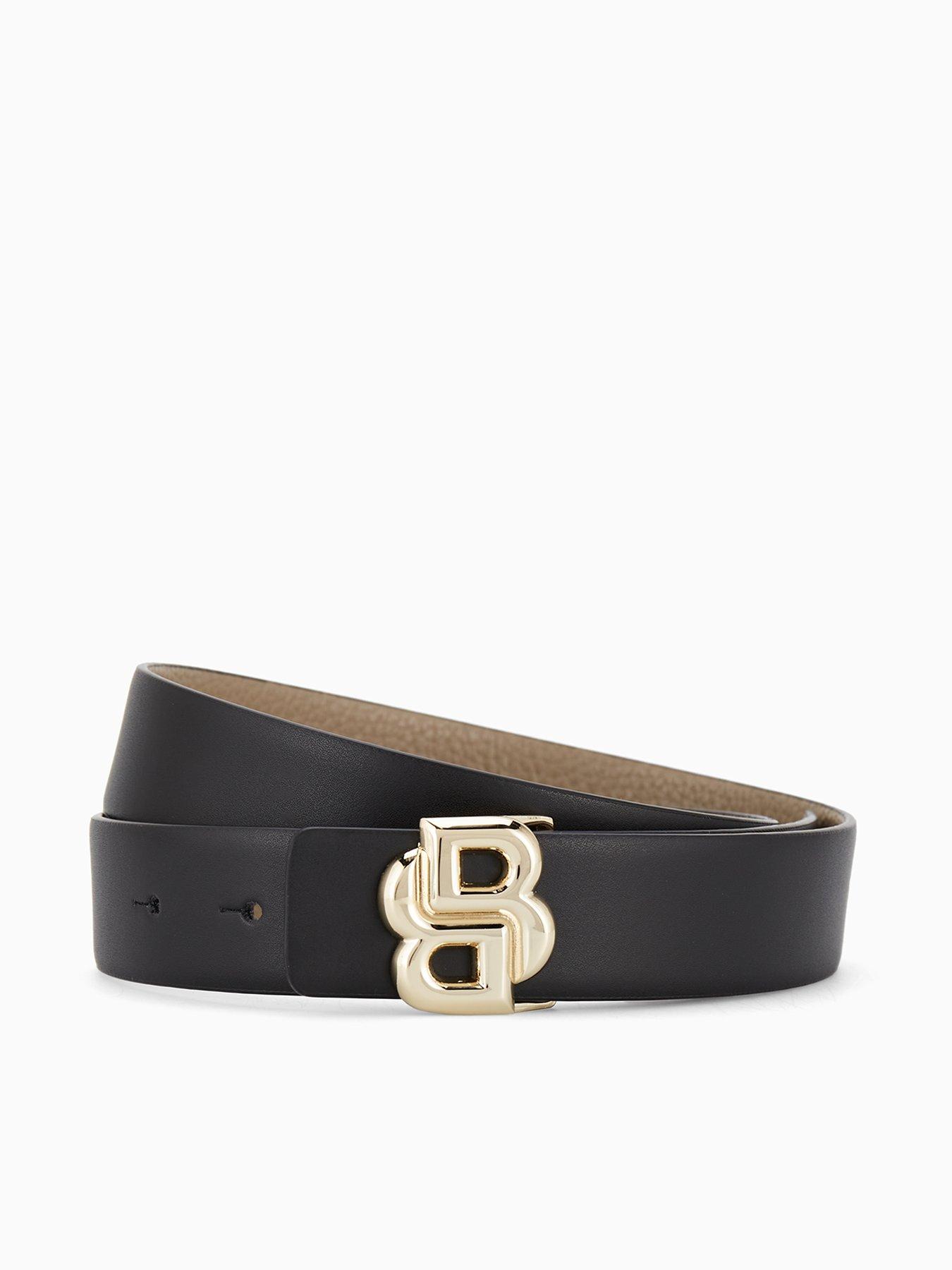 BOSS Icon Gold Buckle Belt Details Icon Gold Buckle Belt by BOSS Black This 3cm BOSS Womenswear belt will round out any look with sophistication. Crafted in smooth leather with a polished monogram buckle. For the best fit, we advise ordering a belt one size larger than your waist size. The perfect finishing touch to any look Material & Care Material Content: 100% Cow Hide Leather Washing Instructions: Wipe Clean