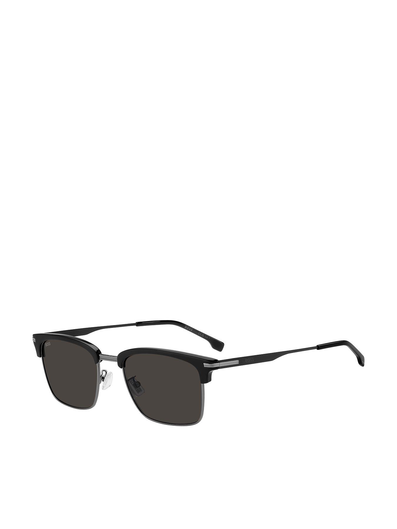 Boss Rectangular Browline Sunglasses Size & Fit One Size Details Rectangular Browline Sunglasses- Black By Boss Dark Grey Clubmaster Frame Lens With Dark Tint Slim Arm Detail Single Bridge With Adjustable Silicone Nose Pads Material & Care Material Content: Metal Washing Instructions: Wipe Clean